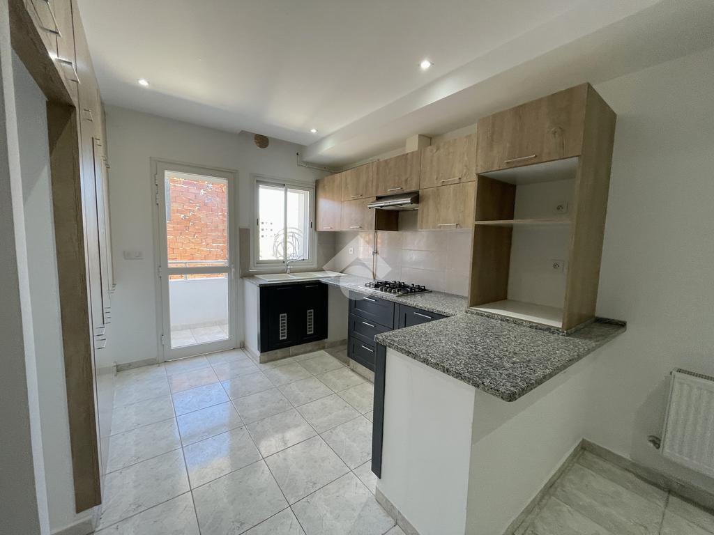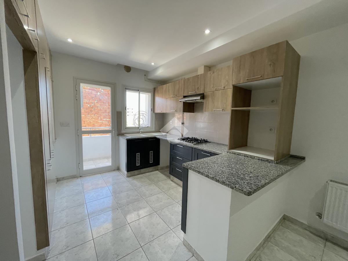 Situé au 1er étage d’un immeuble à Zaouiet Sousse, cet appartement de type S+2 offre un cadre de vie agréable et fonctionnel. Il dispose d’une cuisine ouverte, richement équipée avec des éléments de rangement, une plaque de cuisson et une hotte.